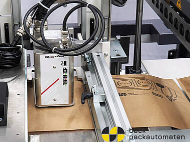 Para presentar el contenido del producto en la bolsa de papel, se pueden utilizar los más diversos sistemas de etiquetado, como por ejemplo, inyección de tinta, transferencia térmica, etiquetado o control de marcas de impresión. De este modo, el producto sigue siendo visible para el cliente.